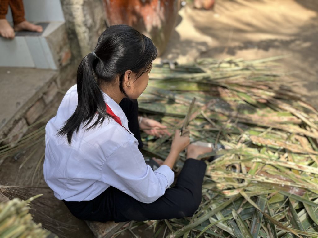 Ở một góc Đồng Tháp khuất nẻo, học bổng Hands-on đến thăm một căn nhà chênh vênh nằm bên mé sông – nơi mỗi mùa mưa nước ngập lên quá đầu gối, nguy cơ sạt lở bất cứ lúc nào. Đó là nơi em Tiên lớn lên, cùng ông bà và vài người thân trong đại gia đình ba đời là dân nhập cư. Không đất, không hộ khẩu, ngày xưa cả nhà từng sống lênh đênh trên chiếc ghe gỗ nhỏ, bắt cá tôm nay đây mai đó sống qua ngày. Khi nước lũ không còn về, họ lên bờ, cất tạm mái nhà bằng tôn và ván gỗ. Ông bà và những người lớn trong nhà – không ai biết chữ. Thế hệ của Tiên là lần đầu cả nhà có người biết chữ, được hy vọng vào trường lớp, vào một con đường khác.