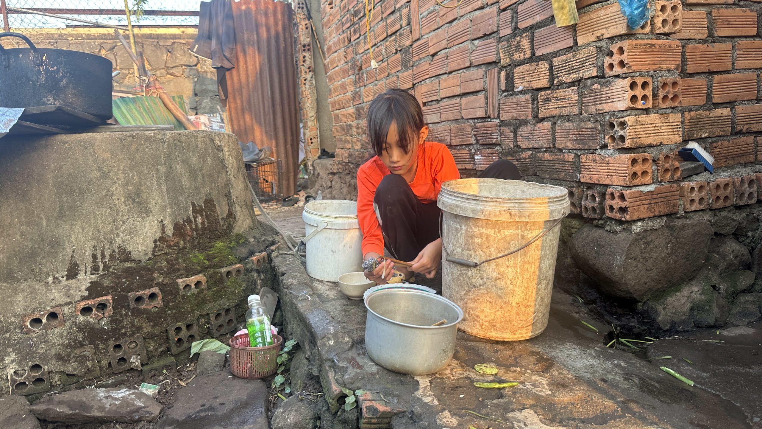 Từ đó, gánh nặng cơm áo, thuốc thang dồn hết lên ông bà ngoại đã quá tuổi lao động, thường xuyên đau ốm. Nguồn sống của cả gia đình chỉ dựa vào vài luống rau quanh nhà và đi nhặt ve chai. Thương mẹ và em, ngoài giờ đến lớp, bé Phương mới 11 tuổi đã phải lầm lũi đi nhặt phế liệu để phụ giúp ông bà.