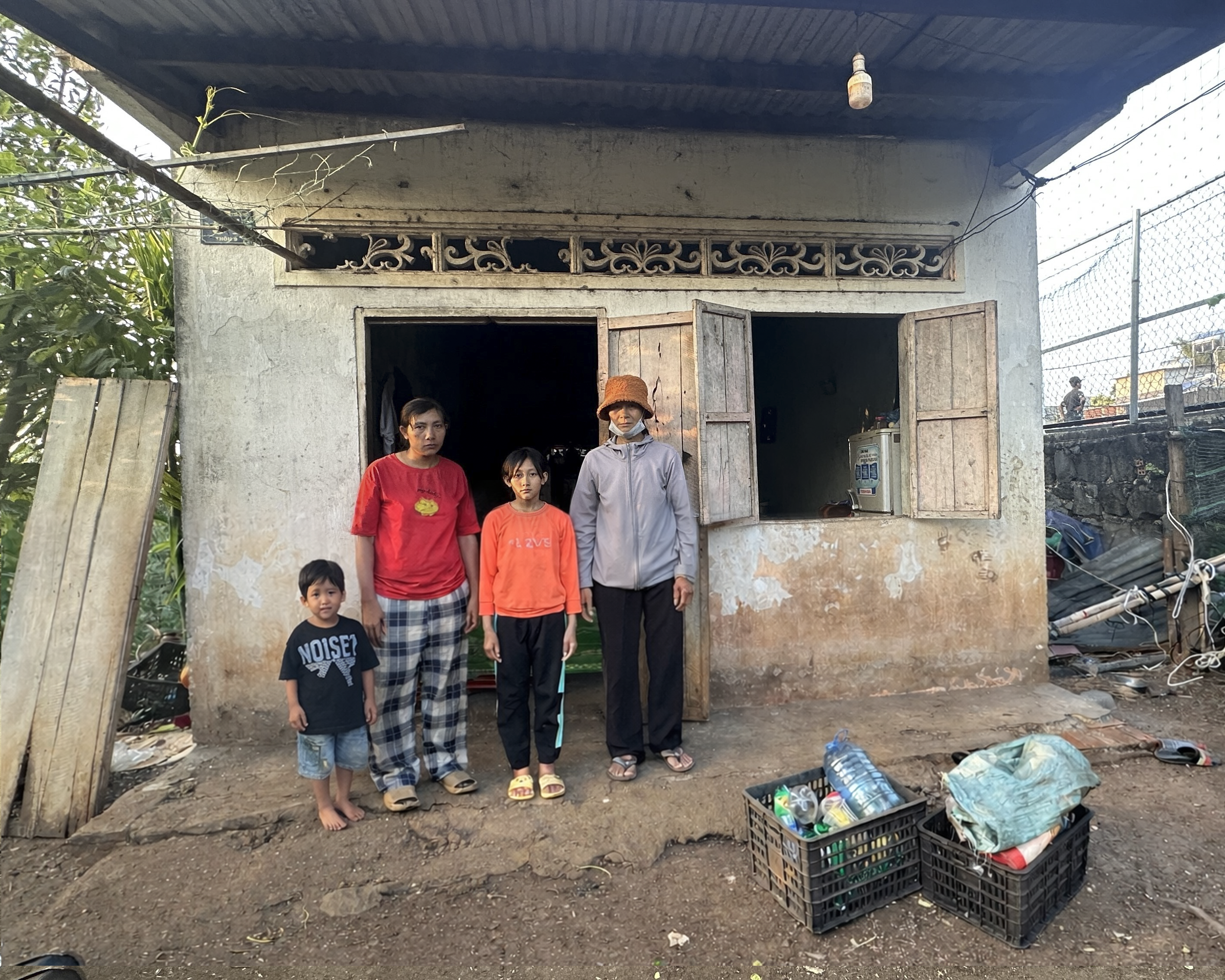 Cuối 1 hẻm nhỏ ở thôn Tân Thành, xã Hòa Phú, Đắk Lắk, có 2 chị em mồ côi cha sống với người mẹ bệnh tâm thần và ông bà ngoại già yếu trong căn nhà dột nát.